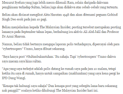 Thursday, August 13, 2015RARA OTHMAN DIPANGGIL POLIS DANG WANGI UNTUK BAGI KETERANGAN KERANA HINA SULTAN!!!
